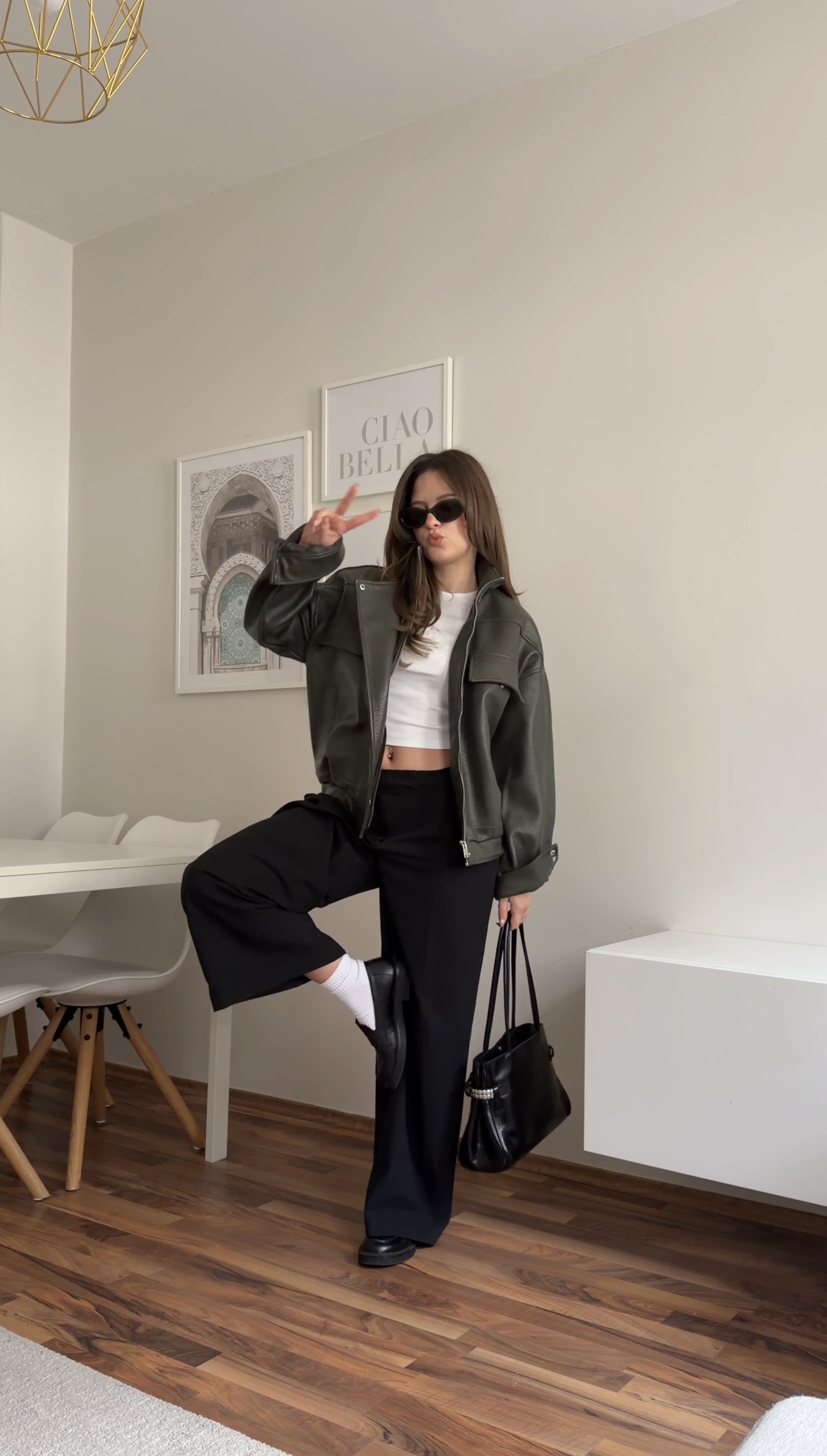 jessicafamendo February 23, 2026 ootd #36 GREEN LEATHER JACKET FIT *Anzeige/Ad/affiliate Found something you like? One click takes you straight to the shop. ↓ SHOP MY LOOK socks whiteWidel Leg Trousers Black (similar)letaher jacket (similar)Jacket GreenLoafers Black (similar)T-Shirt WhiteBag Liebeskind Berlin Noriearrings silber round chuncky (similar)black wide trousers (similar)Sunglasses Follow me on Instagram @jessicfamendoor click here ✨🤍 Follow: You may also enjoy:ootd #34ootd #26ootd #32ootd #30